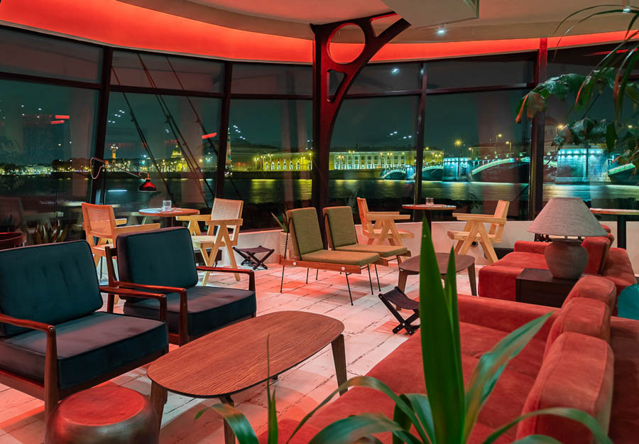— Что мы имеем? Панорамные окна с видом на Неву и Стрелку Васильевского острова. Авторскую кухню [от] Давида Эйро из Франции. Диджея, который начинает играть с 20:00. И шикарную атмосферу!