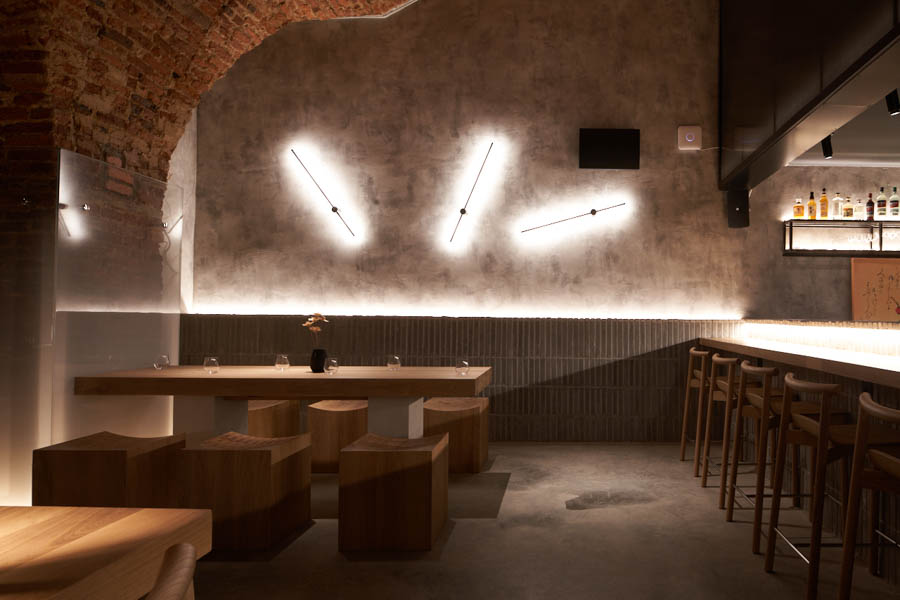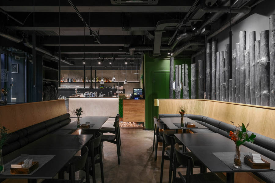Новое заведение на 13-й линии Васильевского острова работает при одноименном онлайн-ресторане: еду для гостей готовят на той же кухне, что и блюда для доставки «Шесть сезонов». Кухню возглавляет шеф Александр Кокурин, разработавший лаконичное меню с пинчос и тапас, закусками и салатами, основными блюдами, супами и десертами. Попробовать можно, например, кальмара с черным ризотто и соусом из маракуйи, сливочный суп из зеленого горошка с угрем и другие блюда, не представленные в онлайн-ресторане. К еде подают вино и коктейли от бартендера Сергея Ивашкевича, а в отделке пространства на 30 посадочных мест использовали мох, живые растения и опаленные бревна. Под потолком растянули полотна ткани, на которые транслируют проекцию теней деревьев, а у входа установили стеклянную стену с битой посудой.