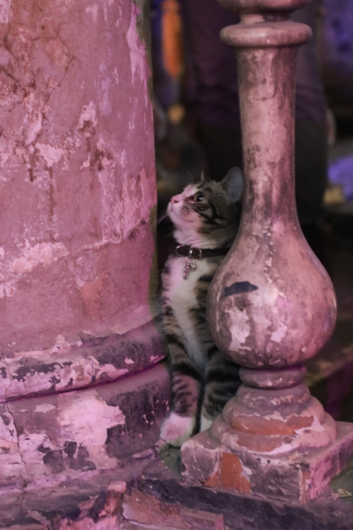 Одна из посетительниц рассказала, что испугалась кота, потому что слышала звук, но не понимала, откуда. Оказалось, звенел колокольчик на ошейнике Мартина Лютера Кота.