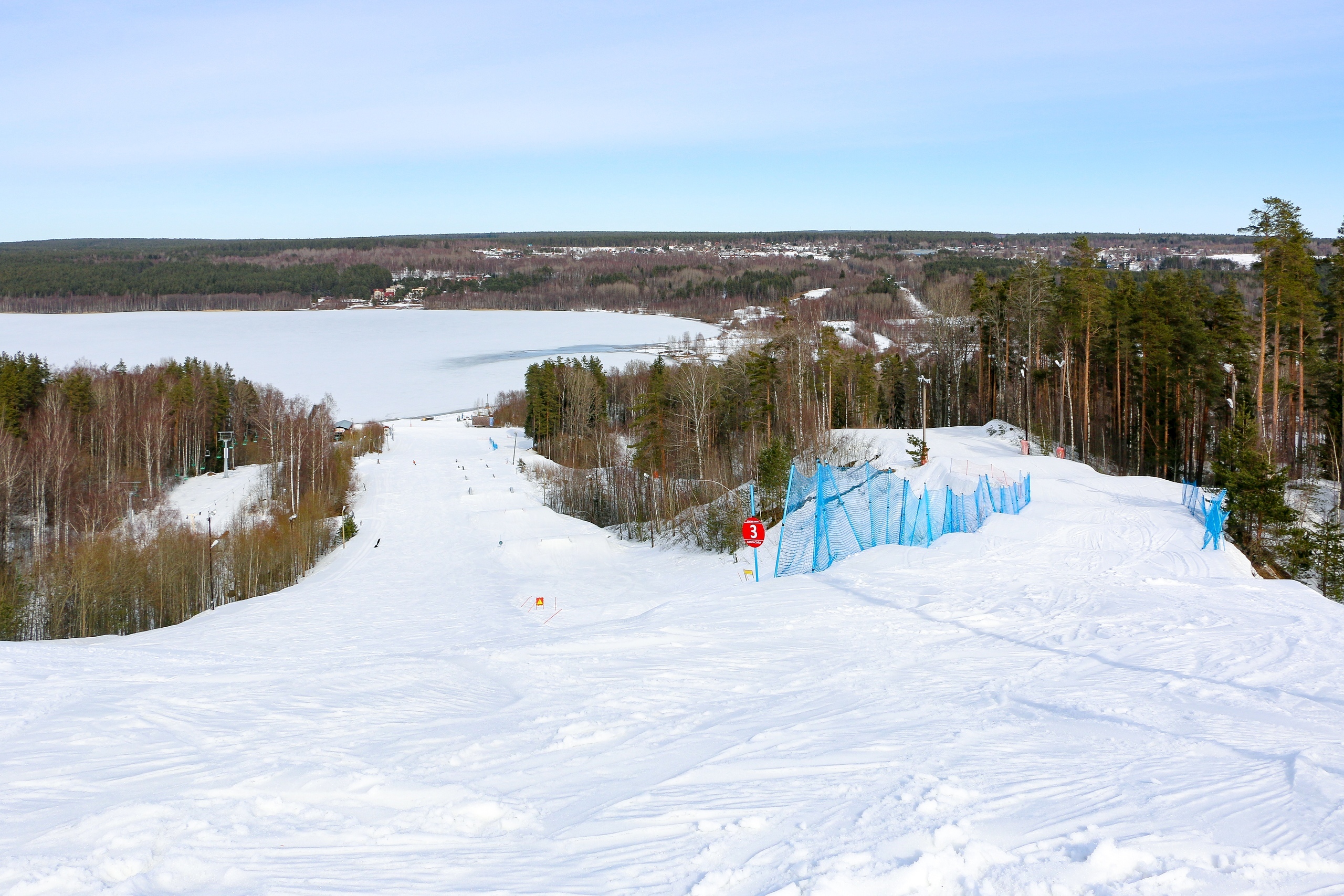 Еще один курорт для новичков. Длина склона здесь 400 метров, а перепад высот — всего 53 метра. На «Лазурных озерах» оборудовали две освещаемых трассы — взрослую и детскую. Значительных очередей на катание здесь обычно нет, и это самый новый комплекс в списке — его открыли в 2017 году.