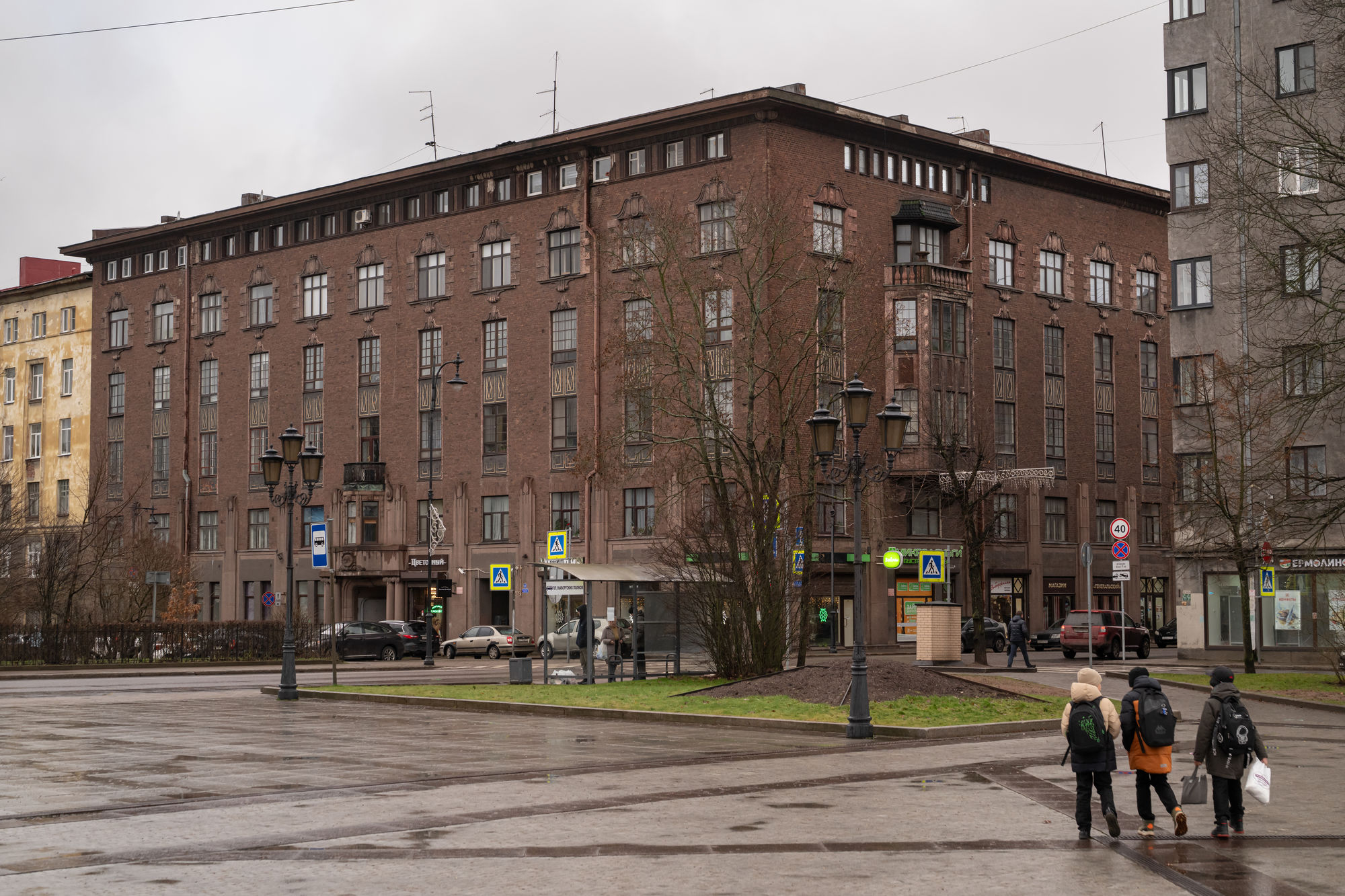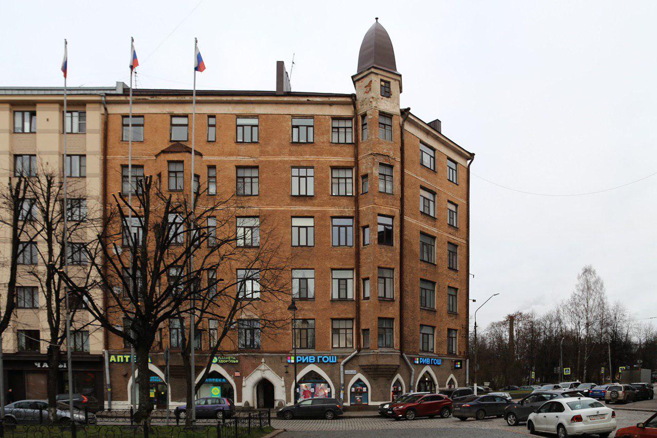 - Совсем рядом, на проспекте Ленина, 8а, обратите внимание на бывший дом Национального акционерного банка, сейчас внутри — квартиры. Чертежи здания составило бюро «Нюстрем-Петрелиус-Пенттиля», соорудили дом в 1901 году. Обратите внимание на герб Финляндии на фасаде и гранитный паровоз.