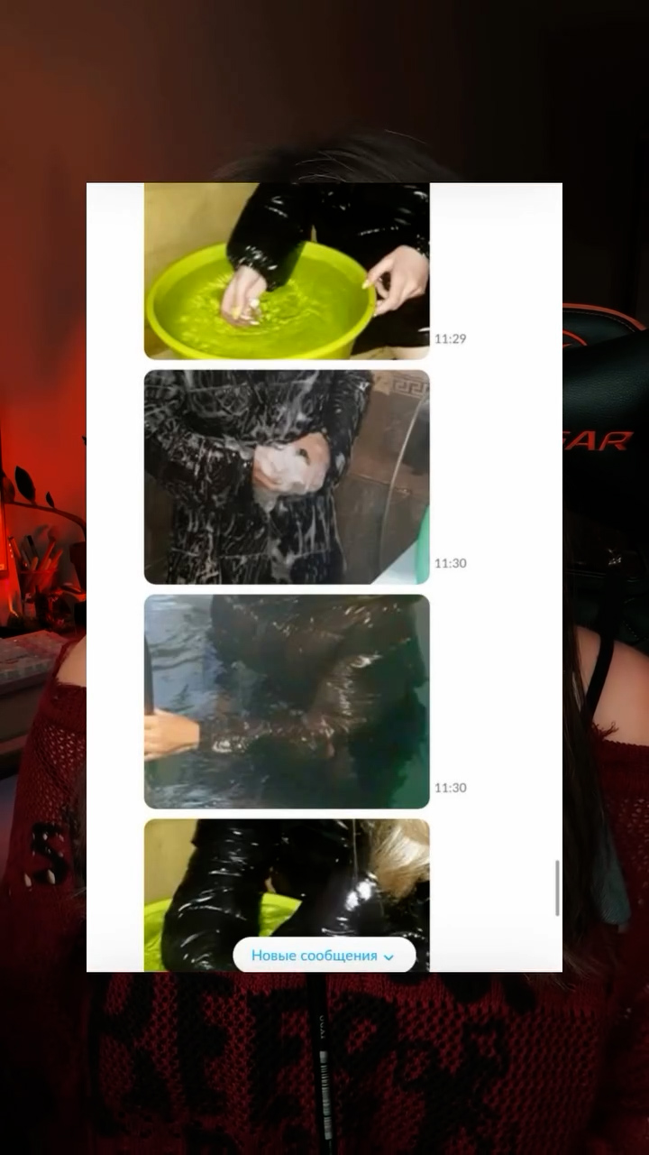 По словам Златы, женщина представилась клинером и спросила, надувается ли пуховик в воде. Потенциальная покупательница объясняла, что использует болоньевые куртки для уборки — якобы ими удобно чистить кафель. «Перед этим куртку замачиваешь в большом ведре. Она обязательно должна надуваться при этом. Причем происходит самонадутие куртки, сильное», — написала собеседница, а затем начала присылать фотографии мокрых пуховиков и купающейся женщины в куртке.