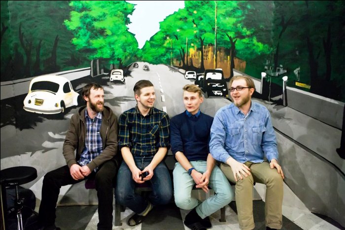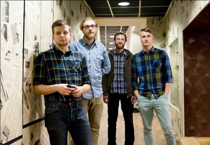 Слева направо: Саша Львов — ударные, Макс Куббе — вокал, гитара, Петя Терновой — бас-гитара, Андрей Васильев — гитара. Фото: Екатерина Мостовая / «Бумага»