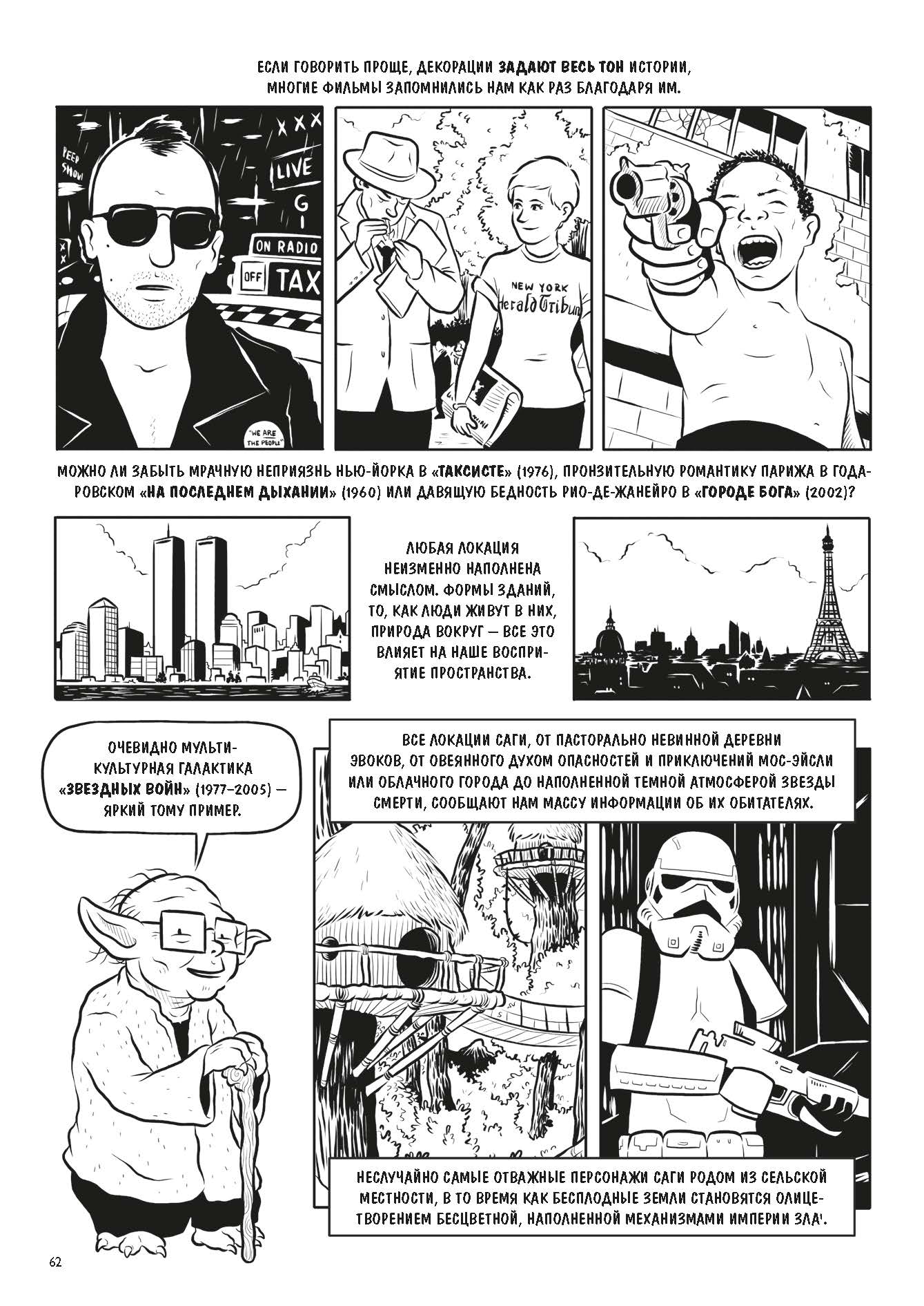 Что деревни и города «Звездных войн» рассказывают о героях фильма, как Ридли Скотт создал атмосферу антиутопического метрополиса в «Бегущем по лезвию» и почему кинематограф изменил наше восприятие пространства — «Бумага» публикует главу комикса о роли архитектуры и декораций в кино.