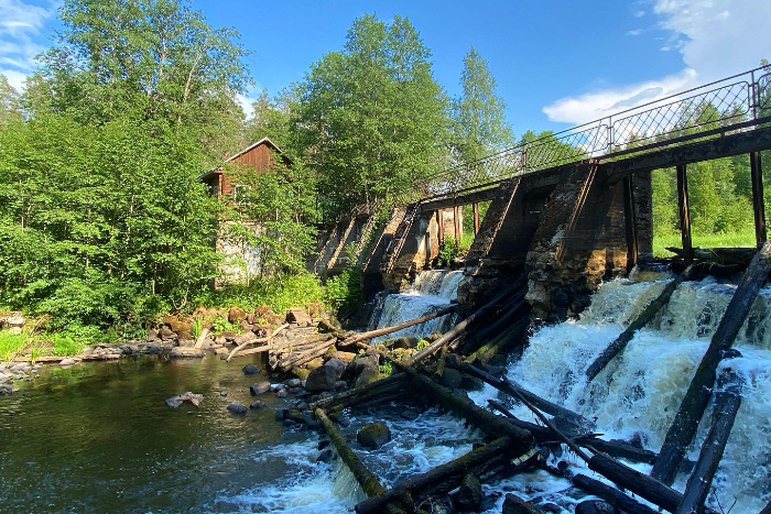 Ближе к концу путешествия вы увидите старую финскую ГЭС, построенную в 1928 году. Рядом с ней когда-то находились лесопилка и мельница, а теперь — туристическая база. Через несколько километров после этой достопримечательности маршрут закончится.