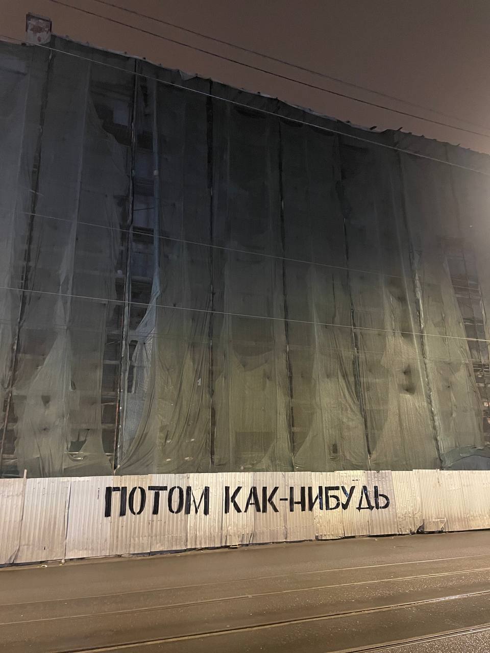 — У меня есть ряд объектов, в которых я прорабатываю свои негативные паттерны, от которых хотелось бы избавиться, и прокрастинация — один из них. Пагубная привычка, которая просто крадет время. На выходе с Финляндского вокзала в наше время пассажиры видят уставший обтянутый фасадной сеткой памятник регионального значения, который простирается на несколько десятков метров. И ничего с ним последние годы не происходит. Это удачная локация для визуального совмещения с такой пагубной привычкой, как прокрастинация.