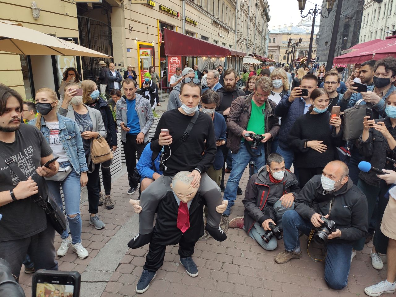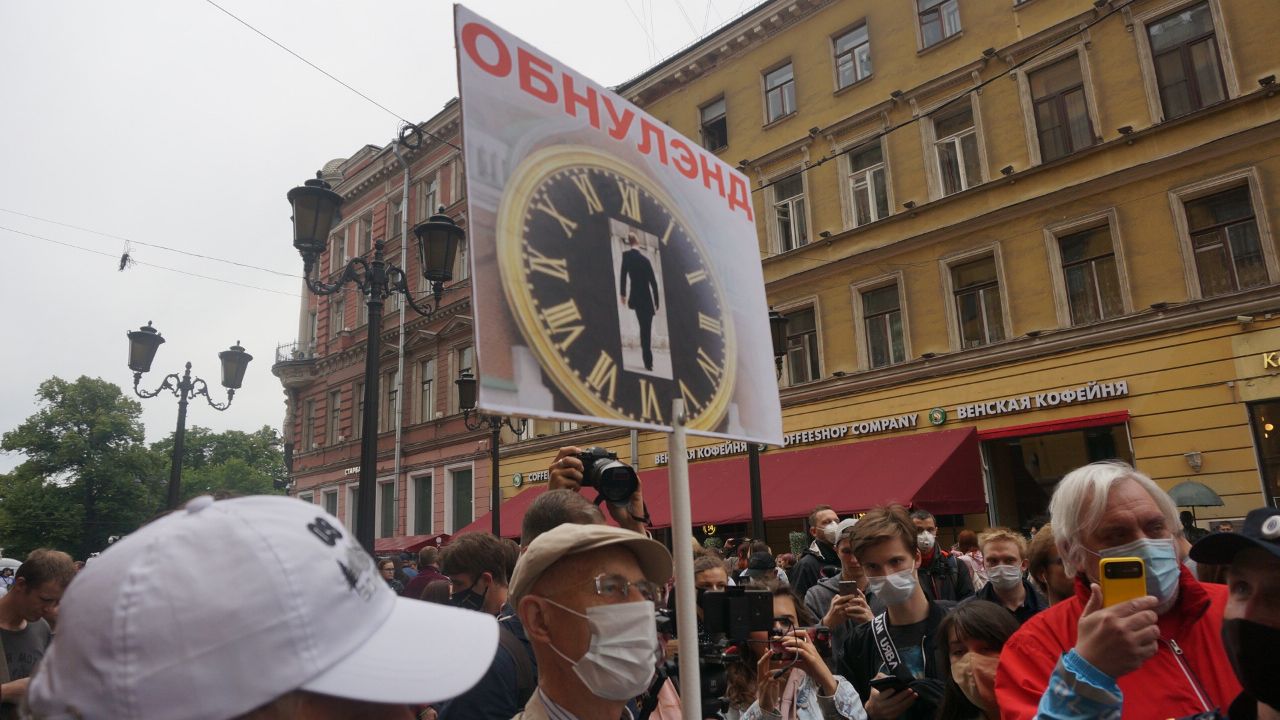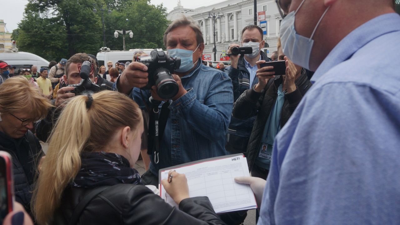 Вечером 15 июля в центре Петербурга прошла акция против внесенных в Конституцию поправок. Желающие встать в одиночные пикеты выстроились в многометровую очередь, она растянулась примерно на 500 метров.