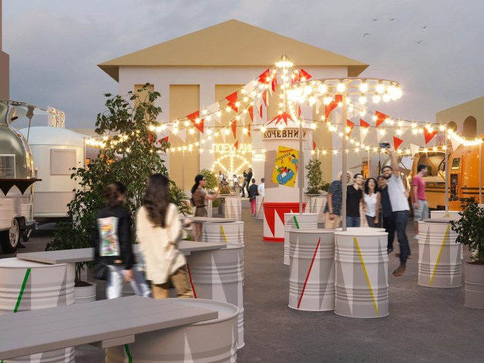 Фудтраки разместят между Гостиным двором и зданием Городской думы, также там организуют сцену и киоск с сувенирами. Резидентов пространства пока не называют — их начнут анонсировать на следующей неделе в инстаграме проекта.