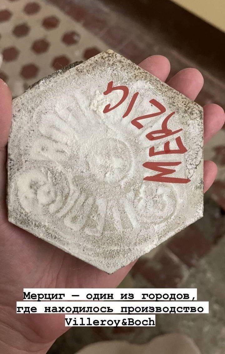 В парадной дома № 5 на Большой Пушкарской улице демонтировали часть плитки. Согласно клеймам, это покрытие Villeroy & Boch начала XX века, рассказали «Бумаге» представители движения «Двери с помоек».
