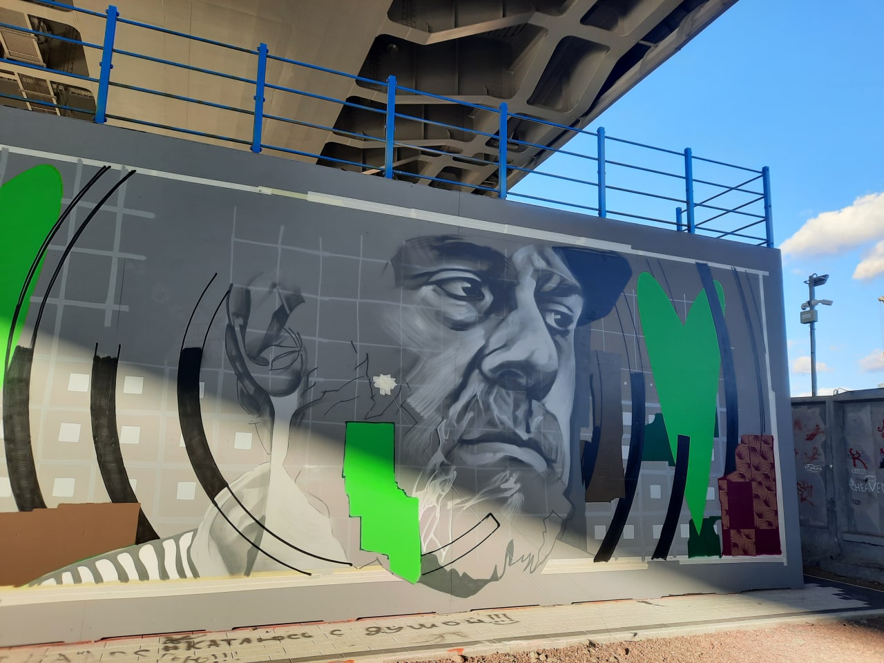 Под мостом Бетанкура в Петербурге появился огромный портрет Сергея Довлатова. Его создали уличные художники Стас Багс и Миша Верт в честь недавнего дня рождения писателя. «Бумага» показывает фото.