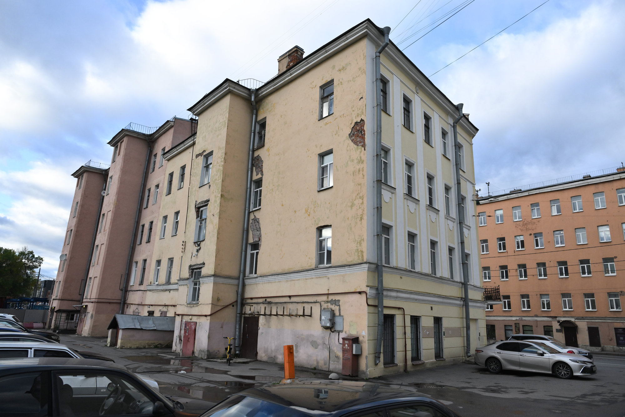 Дом 48 состоит из трех дореволюционных зданий — в послевоенное время их надстроили и объединили единым фасадом, с которого убрали декор. Здание находится в створе будущей трассы моста — эстакаду возводят в паре десятков метров от окон. Несмотря на это, решение об изъятии участка под домом власти приняли только в июне этого года, поэтому в здании по-прежнему живут люди, а также работают центр общественных связей МВД и супермаркет «Магнит». По словам сотрудниц магазина, до конца сентября «Магнит» еще точно проработает, но что дальше — неясно.