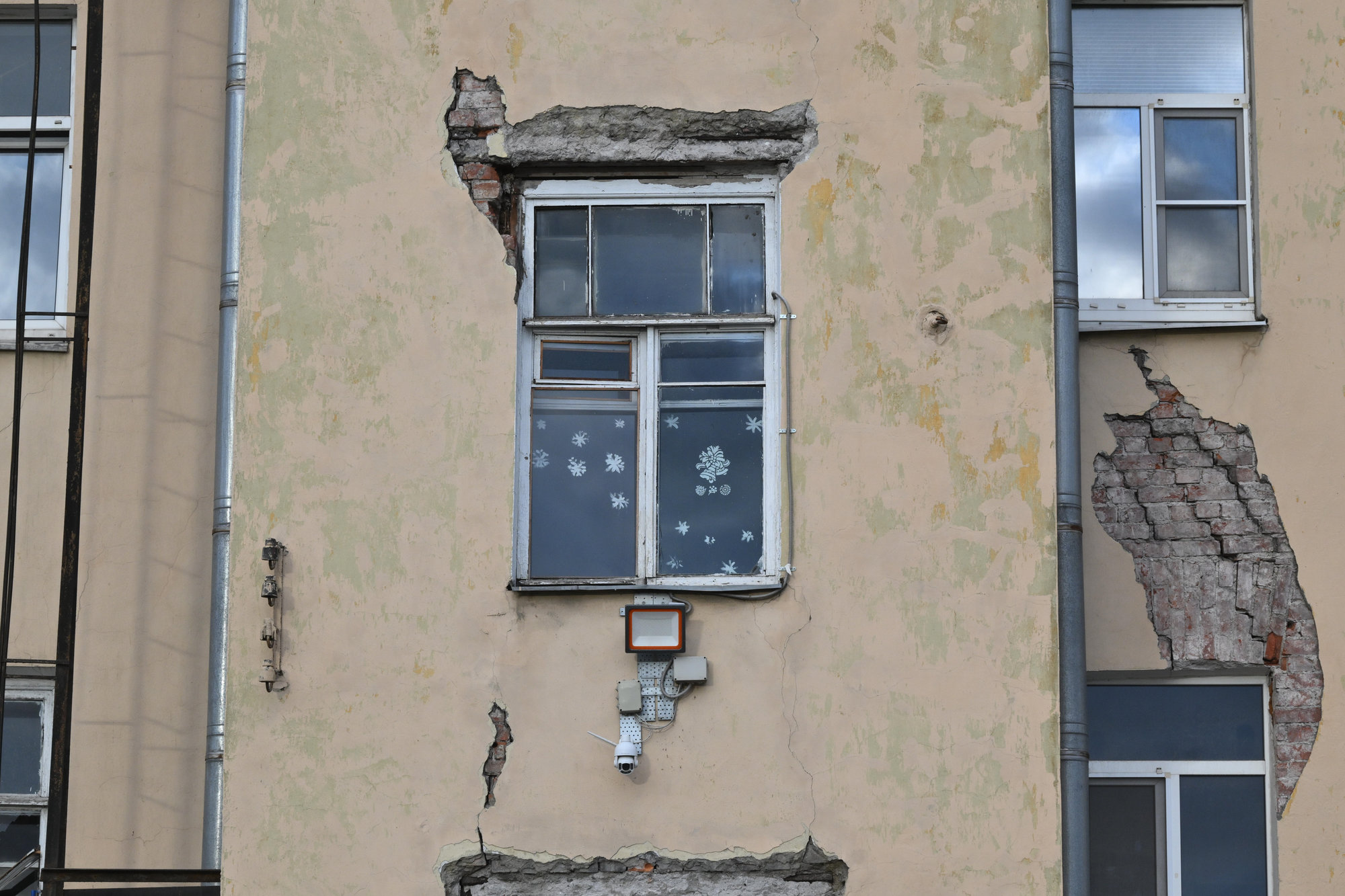 На наружной брандмауэрной стене дома — две трещины, одна из которых проходит от крыши до второго этажа. По словам жителей, трещины появились несколько лет назад, но до строительства моста расширялись медленно. В некоторых местах стены в верхней части здания обсыпалась штукатурка и выпало несколько кирпичей.