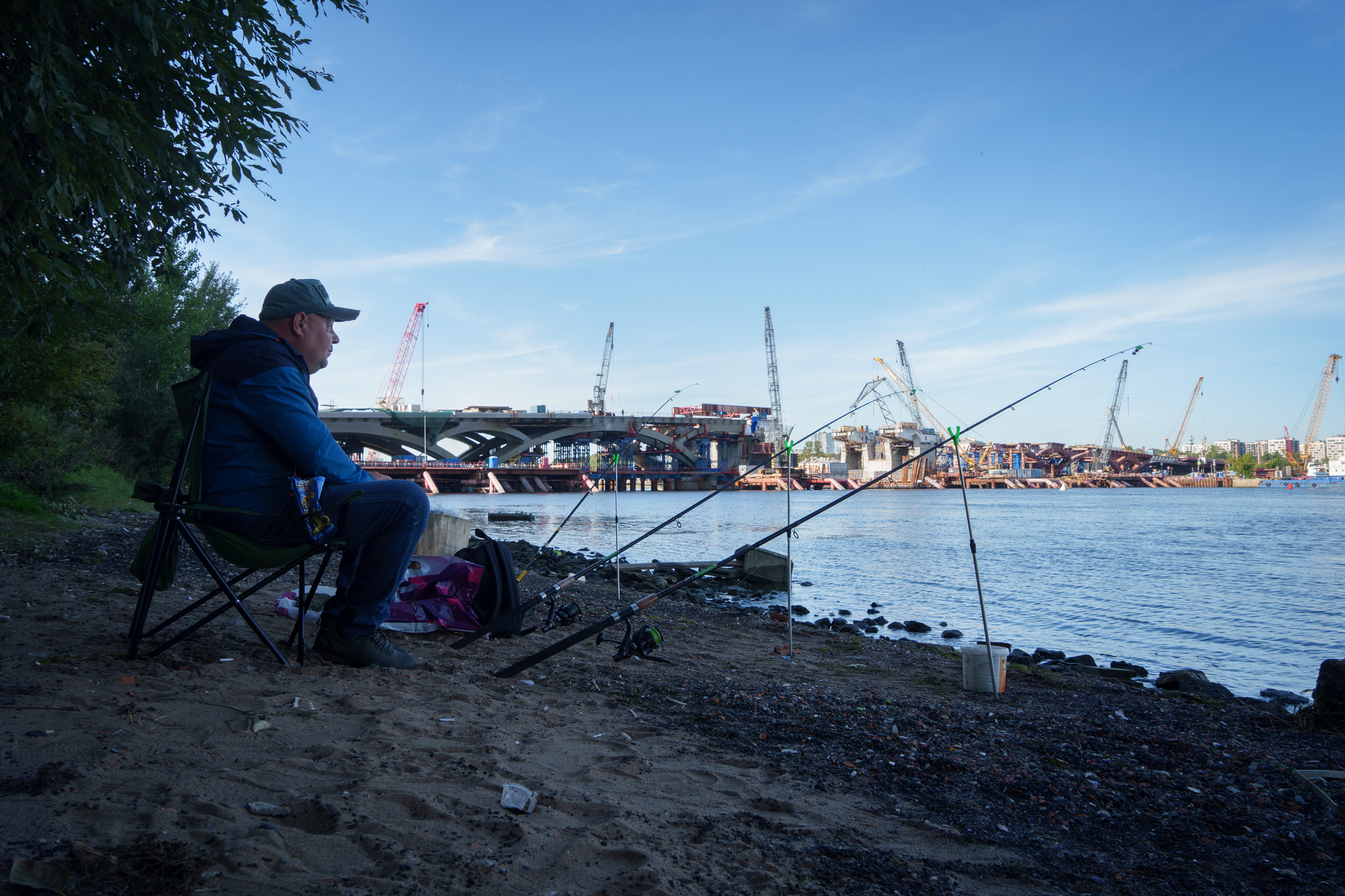 Рыбачащий на берегу Невы в 200 метрах от стройки 50-летний мужчина живет на близлежащей улице Ольминского, ездит на личном автомобиле. Он называет мост «нужным» и надеется, что сооружение разгрузит пробки на проспекте Обуховской обороны, которые увеличиваются из-за появления в районе новых домов. Однако отношение к стройке он называет «двояким».