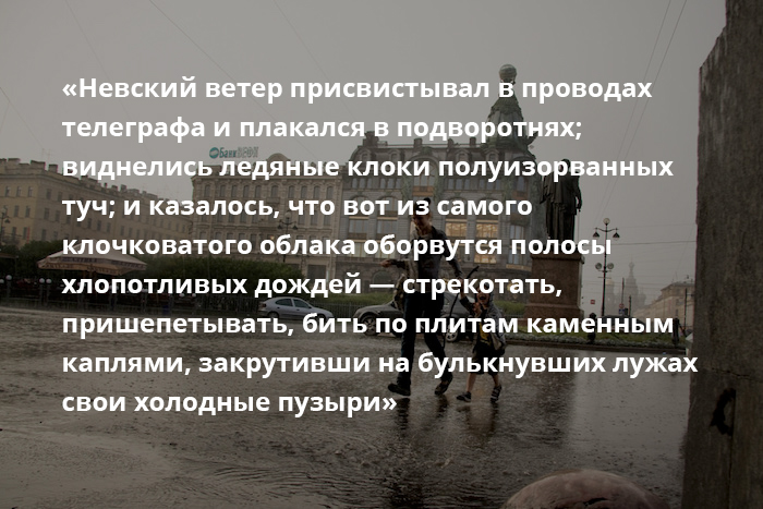 За зиму в Петербурге успеваешь забыть о дождях, но весной вода вновь начинает литься с неба — тогда-то и вспоминаешь, что так было всегда.