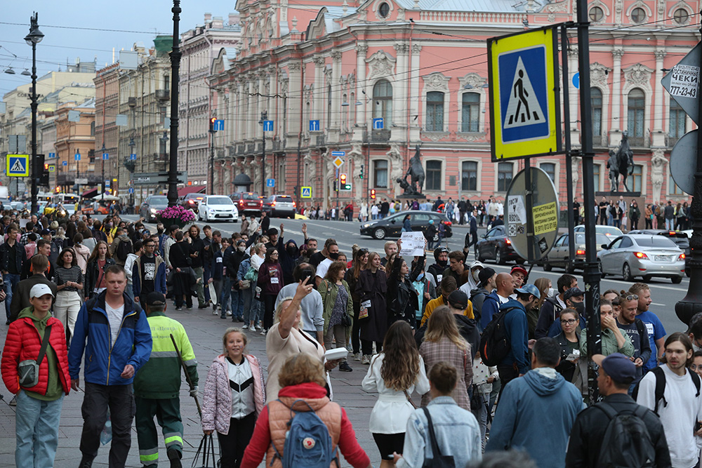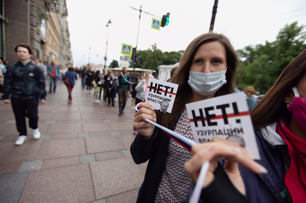 Вечером 15 июля в центре Петербурга организовали акцию из-за внесенных в Конституцию поправок. Сотни горожан встали в очередь, чтобы оставить подписи против изменений. Люди также стояли в одиночных пикетах с плакатами «Обнулэнд», проезжающие мимо автомобилисты сигналили в поддержку собравшихся.
