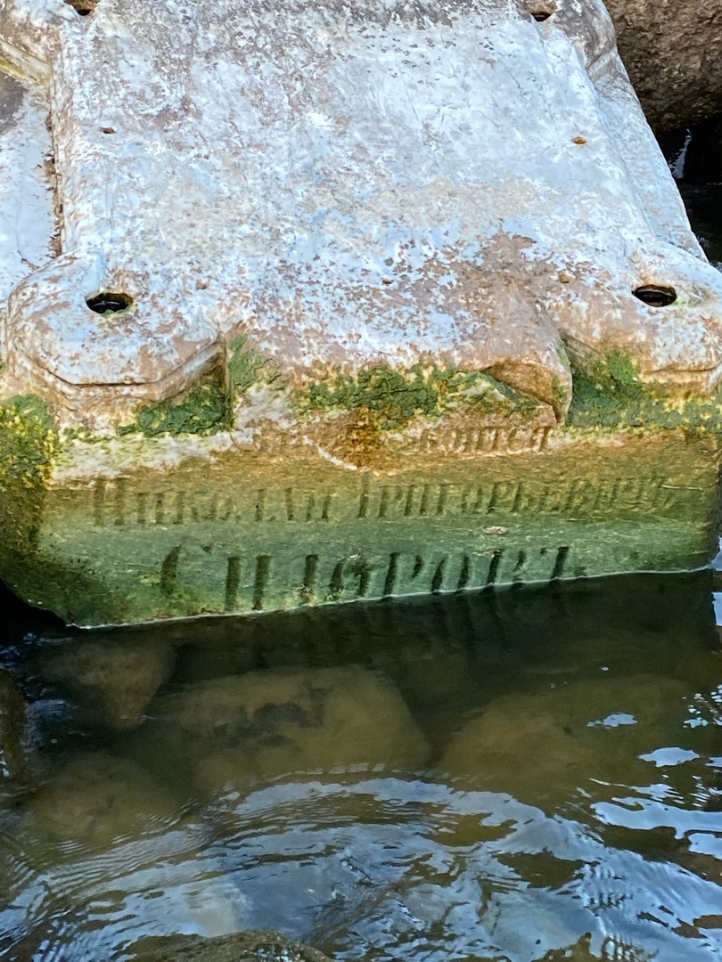 «При низком уровне воды у каменного основания гавани… мы заметили мраморный куб. При ближайшем рассмотрении оказалось, что это надгробная плита, где можно разглядеть следующие слова: „…коится Николай Григорьевичъ Сидоровъ“», — написал Уртьев.
