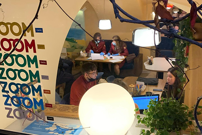 13 ноября в районе 16:30 в кафе зашли десять полицейских при оружии, вместе с ними были сотрудники Роспотребнадзора. Важный момент: перед ними, буквально минут за пять, в кафе зашло примерно десять человек без масок и перчаток (выглядели они совсем не как гости Zoom’a), они одновременно сделали по небольшому заказу и сели достаточно близко друг к другу. На предложение соблюдать дистанцию они не отреагировали. Когда зашла полиция, эти люди начали активно рассчитываться, и один из этих странных гостей заказал на 510 рублей, но дал только 500. Официант спросил, где недостающие деньги, на что мужчина ответил, что ему выдали только 500. В итоге 10 рублей за него заплатил один из полицейских (в пресс-службе МВД «Бумаге» отказались комментировать ситуацию. В ведомстве сказали: «Мы комментируем факты, а не бред» — прим. «Бумаги»).