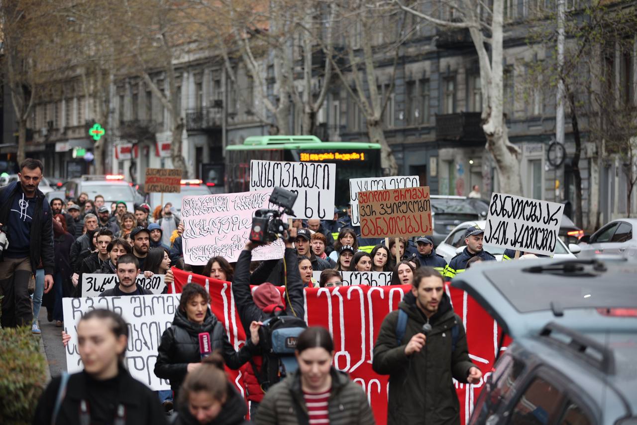 Так, 15 апреля около сотни студентов прошли от станции метро проспект «Руставели» до здания парламента и присоединились к акции против законопроекта «об иноагентах».